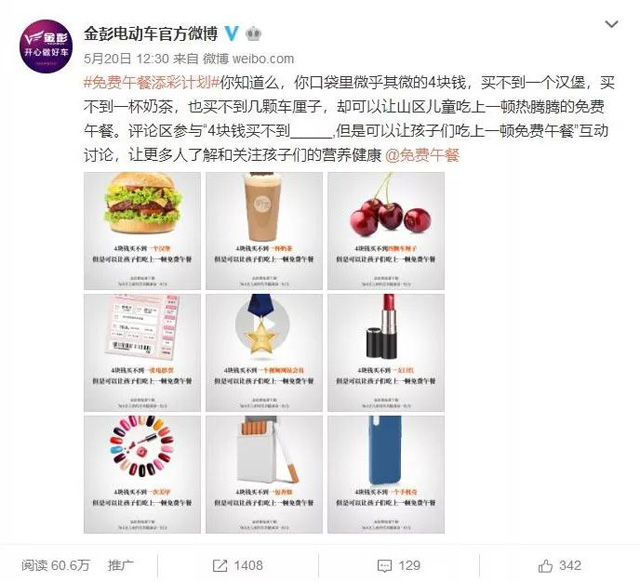 難以想象,我們日常生活中隨手浪費掉都不會心疼的“4塊錢”,卻能為偏遠山區的學童實實在在解決一頓熱騰騰的營養午餐。于是在2017年,金彭與中國社會福利基金會免費午餐基金達成了三年的愛心大戰略合作,承諾每年捐助不低于100萬元用于解決偏遠地區學童的午餐問題。